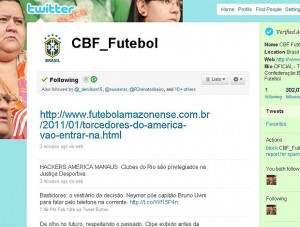 Neste sábado, o Twitter oficial da Confederação Brasileira de Futebol (CBF) foi hackeado. Na primeira mensagem, foi deixada a mensagem “hackers América Manaus.