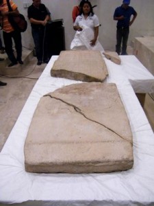 A peça é formada de pedra calcária e esculpida com martelo e cinzel, e está incompleta. “No pouco que podemos apreciá-la, em nenhum de seus lados diz que em 2012 o mundo vai acabar”, enfatizou José Luis Romero, subdiretor do Instituto Nacional de Antropologia e História.