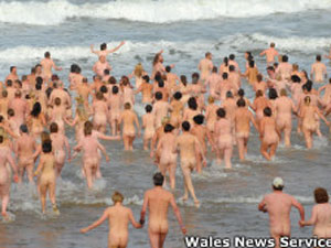 Os organizadores de um evento de nado sem roupas em uma praia da península de Gower, no País de Gales, dizem ter estabelecido um novo recorde mundial depois que centenas de pessoas mergulharam despidas no mar.
