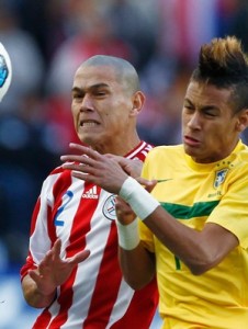 Foi pela esquerda, aliás, que o Brasil quase abriu o marcador aos 32 minutos. André Santos bateu falta para área e Lúcio finalizou da pequena área. Justo Villar salvou. Sete minutos depois, aos 39, Ramires colocou o lateral-esquerdo em boa condição, mas o camisa 6 pegou mal na bola.