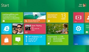 Tela inciar do novo Windows, também com o visual ‘MetroUI’, mais indicado para tablets e computadores operados por telas sensíveis ao toque