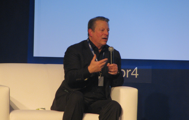 Em uma conferência sobre liderança e inovação na África do Sul, há pessoas relatando ter ouvido Al Gore dizer o seguinte: “Sem deixar de mencionar os novos iPhones que estão vindo no mês que vem.”
