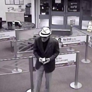 O FBI, a PF dos EUA, procura um suspeito descrito como alguém com idade entre 60 e 70 anos, responsável por assaltar um banco na área de La Jolla, na Califórnia. A suspeita é de que o bandido seja o mesmo que cometeu o mesmo tipo de crime outras 14 (!) vezes no sul da Califórnia desde 2009.