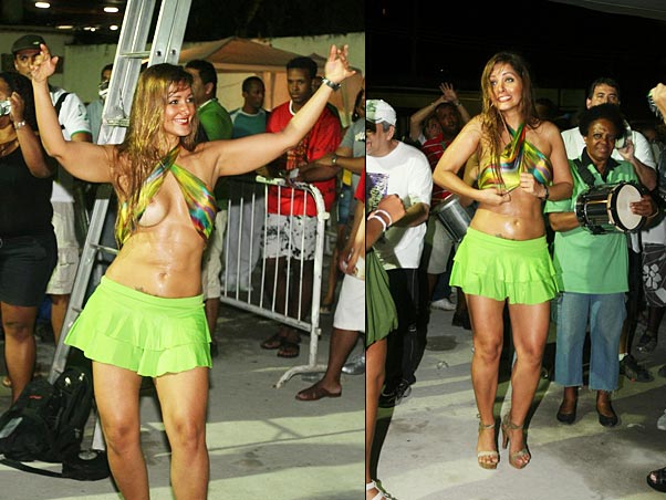 Ao ser avisada, ela colocou o top no lugar e continuou a sambar.