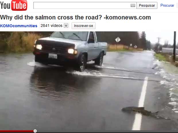 Após fortes chuvas, peixes são flagrados atravessando rodovia inundada nos EUA