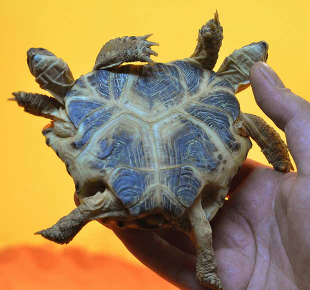 O animal participa de um evento promovido na instituição. O organizador Dmitry Tkachev acredita que a tartaruga seja fruto de uma mutação e que não sobreviveria se deixada na natureza.