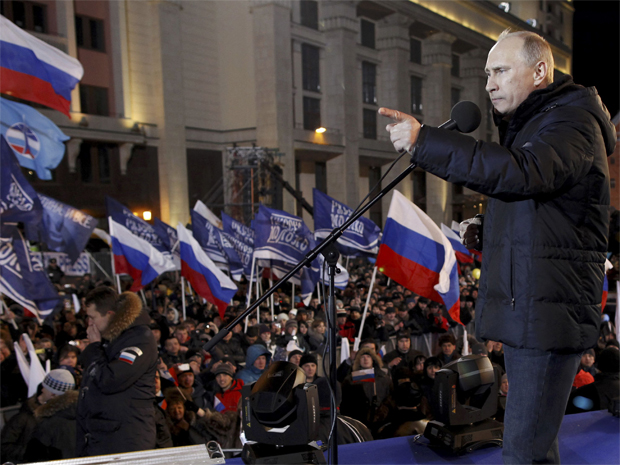 Putin chorou ao se dirigir à multidão de apoiadores que foi às ruas de Moscou para celebrar as primeiras indicações de sua vitória em primeiro turno no pleito.