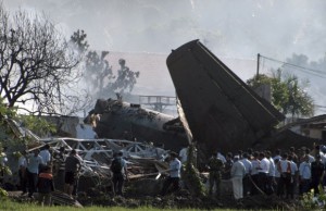Morreram três tripulantes e três pessoas que estavam em solo, segundo as autoridades militares.