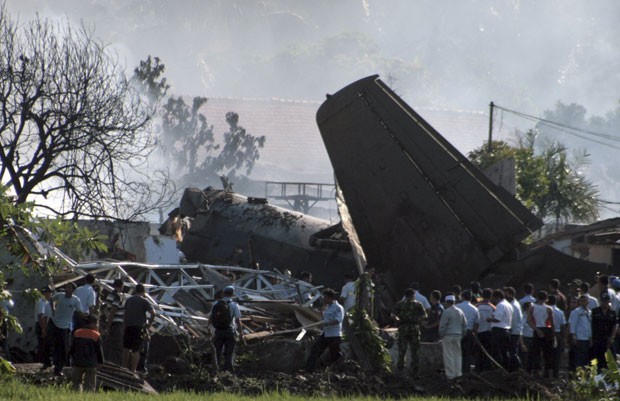 Avião militar cai sobre casas na Indonésia e deixando pelo menos 6 mortos
