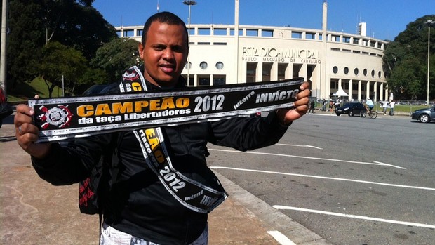 Vendedores ambulantes acordaram cedo para tentar lucrar com o otimismo corintiano. Faixas do Corinthians campeão da Taça Libertadores já são vendidas na Praça Charles Müller, em frente ao estádio do Pacaembu.