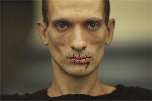 Artista russo costurou os lábios para apoiar autoras de ‘oração punk’