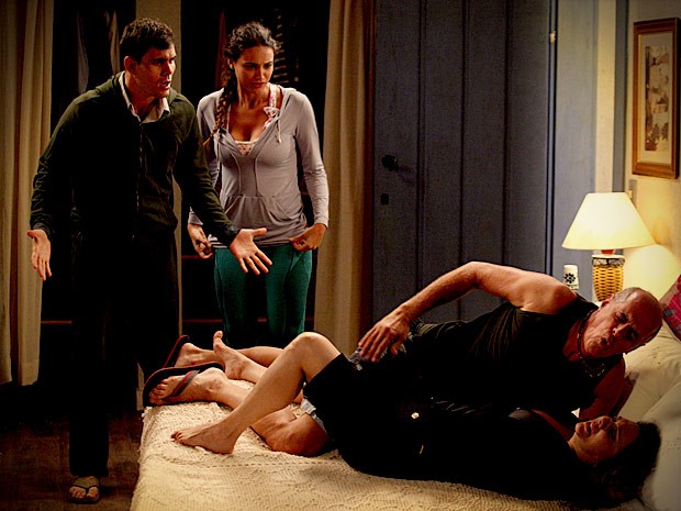 ‘Avenida Brasil’: Tessália e Adauto flagram Leleco e Muricy na cama