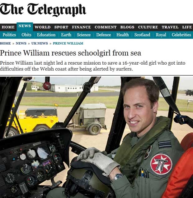 Princípe William resgata garota de 16 anos no mar da Inglaterra
