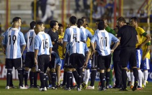 As duas equipes entraram pontualmente no campo de jogo, seguiram todo o cronograma até o pontapé inicial, mas… A luz não voltou. O árbitro conversou várias vezes com o goleiro Jefferson e com o zagueiro Sebá Dominguez, capitães de Brasil e Argentina, respectivamente, e decidiu pelo retorno das duas equipes ao vestiário. Até as 23h10 (de Brasília), o refletor principal seguia apagado e impedia a realização do confronto. Assim, CBF e AFA decidiram cancelar a partida.