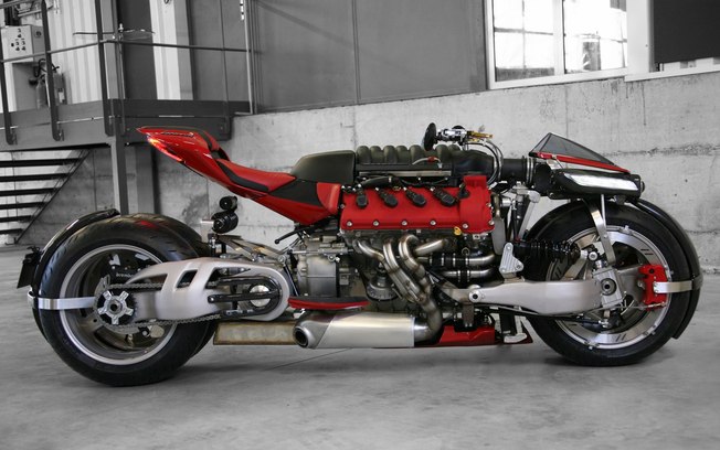 A fabrica francesa Lazareth que construiu essa bestialidade, pegou um motor Maserati V8 com 32 válvulas de 4,7 litros que produz 476 cavalos e construiu a moto em volta. Preço da bricadeira? US$ 217.000,00 (lá fora). Com essa grana você compra um Porsche 911 Turbo S e ainda sobra uns US$ 25.000,00 para o jantar. Só há dois tipos de compradores para essa moto: 1) O colecionador que vai usar a LM 847 como peça decoração na sua sala de estar ou 2) O cara que possui um forte desejo de se matar e realmente use essa moto nas ruas.