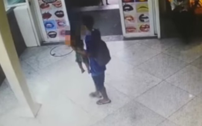 De acordo com polícia, o homem que aparece nas imagens seria o pai do menino e trabalha no próprio estabelecimento