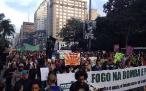 A Avenida Paulista voltou a ser tomada na tarde deste sábado (14) por manifestantes, mas desta vez o tema foi a defesa pela legalização da maconha, ato que ocorre pelo sexto ano seguido. O tema deste sábado foi “Fogo na Bomba. Paz na Quebrada”. Os ativistas iniciaram, por volta das 16h30, a marcha em direção à Praça Roosevelt, no centro da cidade de São Paulo, depois de uma concentração no vão-livre do Museu de Arte de São Paulo (Masp).
