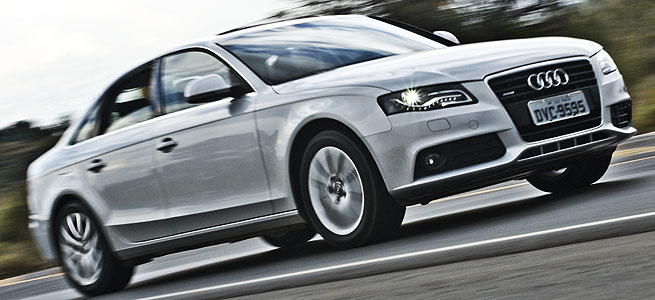 O maior porte da carroceria não afetou o design, pelo contrário. O A4 é praticamente o belo cupê A5 com duas portas a mais. O perfil é esportivo, e os faróis com um filete de 14 leds brancos (charme vindo do R8) fazem o modelo se destacar mesmo a distância. Sob o capô, pulsa o mesmo motor V6 de 3.2 litros com injeção direta FSI do A4 anterior, mas com comando variável das válvulas de admissão. Segundo a Audi, a mudança melhorou em 9% o consumo e aumentou a potência em 10 cv, chegando agora a 269 cv. É o suficiente para acelerar de 0 a 100 km/h em 6,4 s, garante a empresa. A máxima é limitada em 250 km/h.