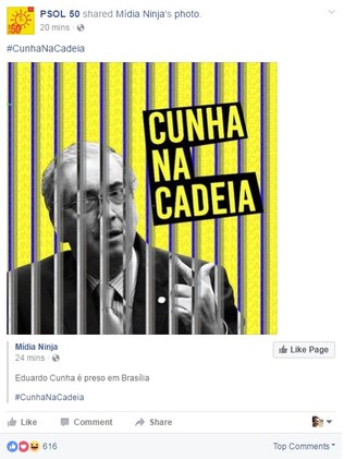 O ex-senador Ciro Gomes (PDT-CE), postou em uma rede social um vídeo no qual Michel Temer faz elogios a Cunha, quando este ainda era deputado. “Eu tenho no Eduardo Cunha um auxílio extraordinário na Câmara Federal”, disse o presidente. Ciro é apontado como provável candidato ao Palácio do Planalto em 2018.