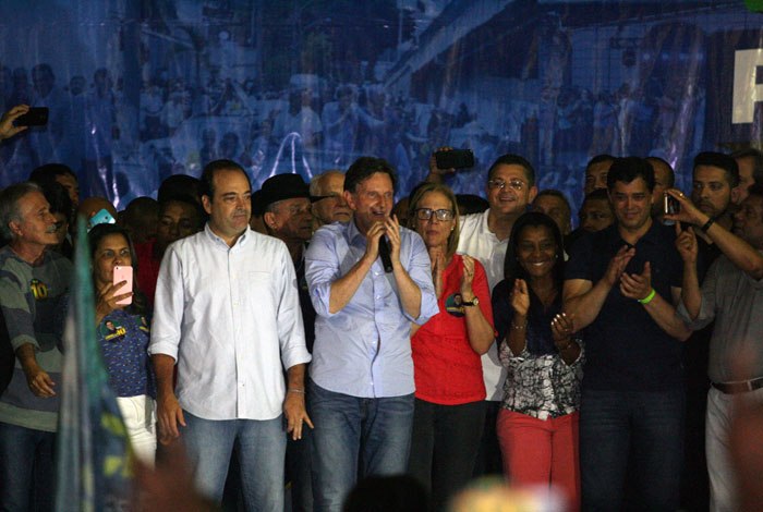 Crivella chegou ao clube acompanhado do vice, Fernando MacDowell e de aliados políticos, como Clarissa Garotinho, Carlos Osório e Índio da Costa, que foram lembrados nos agradecimentos, assim como o senador Romário.