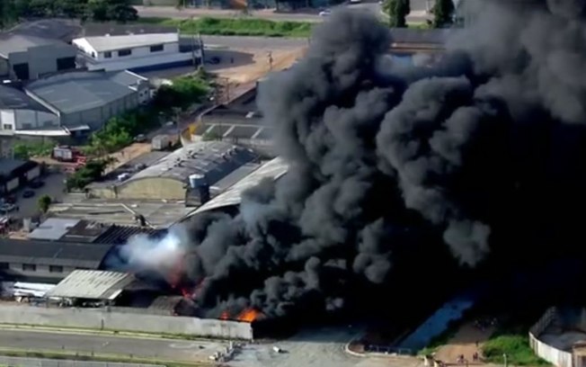 De acordo com os bombeiros, o incêndio, que começou por volta das 17h30 desta quinta-feira (22), atinge uma empresa que seria de material reciclável na Rua Montes Claros, próximo à Rodovia Ayrton Senna.