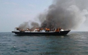 Acidente ocorreu logo após saída de porto em Jacarta; segundo porta-voz da polícia, incêndio foi causado por curto-circuito no gerador de energia