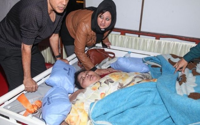 Paciente teve de ser transportada em um avião cargueiro do Egito para a Índia; para sair do quarto, equipes de resgate precisaram de um guindaste