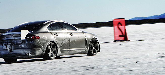 A Jaguar optou por uma estratégia bem convincente para apresentar o novo Jaguar XFR no Salão de Detroit. Antes de ser exibida ao público, a versão esportiva do sedã XF foi colocada à prova no famoso deserto de sal de Bonneville, nos Estados Unidos. O local é palco para a competição que escolhe os carros mais rápidos do mundo, onde correm desde hot-rods até superdragsters de arrancada.