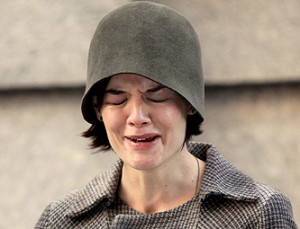 A personagem de Holmes teve que andar pela rua chorando, durante a cena.