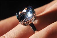 Com 7,03 quilates, a pedra é menor do que uma moeda de um centavo e é um dos raros diamantes azuis existentes.