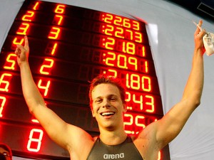 Cielo foi para a água com o maiô X-Glide da Arena, cinza, que, segundo Brett Hawke, seu técnico americano, dá sorte. Com a mudança de regras da natação, o brasileiro também se despede dos supermaiôs que o acompanharam durante o ano. Terminar 2009 com os recordes das duas provas mais importantes da natação era o principal objetivo do brasileiro. Depois da prova, uma comovente homenagem para o técnico Albertinho.