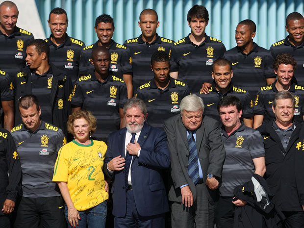 O técnico da seleção, Dunga, e os jogadores escolhidos para participar da Copa do Mundo da África do Sul vieram de Curitiba (PR), onde treinavam no CT do Atlético Paranaense. Ao cumprimentar Lula, que o abraçou, Dunga não tirou a mão do bolso esquerdo.