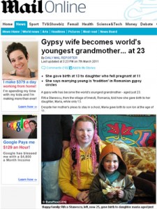 Uma cigana da pequena cidade de Investi, na Romênia, tornou-se avó quando tinha apenas 23 anos.