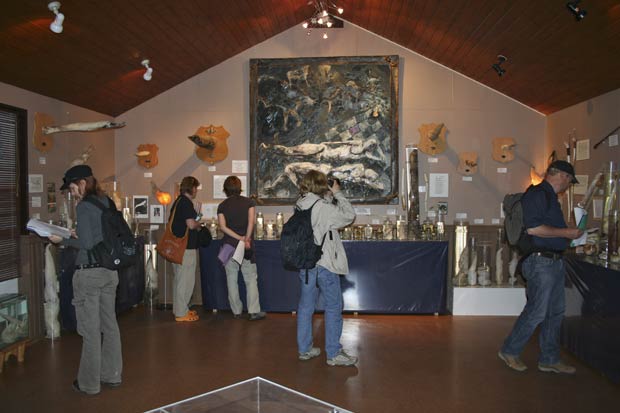 Entre os destaques está um pênis de 170 centímetros de uma baleia cachalote, que é conservado em formol.