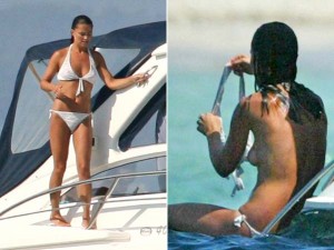 Em passeio de iate com a família, em 2006, em Ibiza, a moça não teve pudores para tirar a parte de cima do biquíni branco, deixando os seios a mostra.