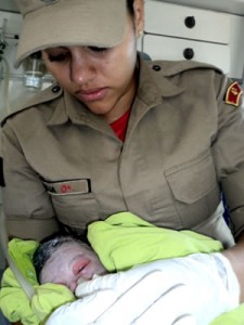 “A criança foi retirada do vaso sanitário com a placenta e o cordão umbilical. O parto foi completo. Então, antes de levar o bebê ao hospital, realizamos o procedimento de laço no cordão umbilical, para não haver riscos para o bebê, e colocamos oxigênio nele até chegar ao pronto-atendimento”, recordou emocionada.