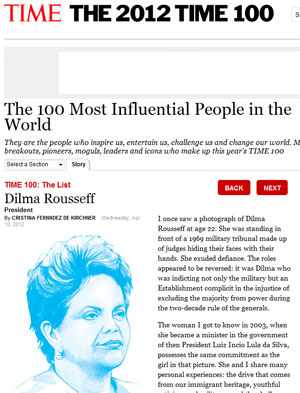 Dilma já havia entrado na lista no ano passado, com perfil escrito pela ex-presidente chilena Michele Bachelet.