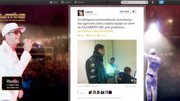 “O cantor Latino informa, na qualidade de testemunha das agressões sofridas pelo produtor de seu Show, na cidade de Nazareno, em Minas Gerais, na noite de Domingo, dia 30 de julho de 2012, que contribuirá com a justiça, para que os fatos venham a ser esclarecidos da forma mais eficaz possível. O artista lamenta muito o ocorrido, e ressalta que todos os elementos que envolvem a investigação serão entregues às autoridades policiais e judiciárias, para que os responsáveis pela eclosão do evento sejam identificados. No mais informa que a vítima da agressão terá o suporte necessário, para que esse episódio seja superado”.