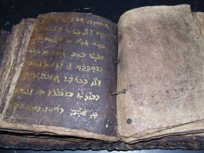 O objeto contém trechos da Bíblia escritos em letras douradas sobre velinos atados precariamente, segundo as fotos fornecidas à Reuters. Uma página traz o desenho de uma árvore, e outra oito linhas de escrita em siríaco.
