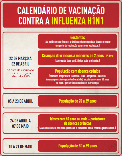 Na última sexta-feira o Ministério da Saúde prorrogou até o dia 23 de abril a vacinação de grávidas, doentes crônicos (exceto idosos) e crianças de seis meses e menores de dois anos.